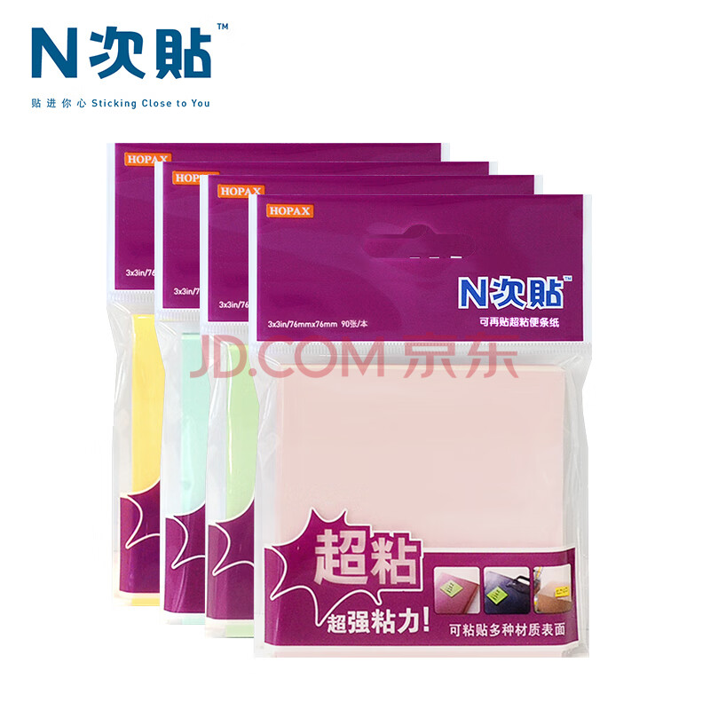商品相册:N次贴(STICKN)4本装超粘便利贴报事贴/便条纸/便签纸/便签本76*76mm360张 柔和四色31097-J4第