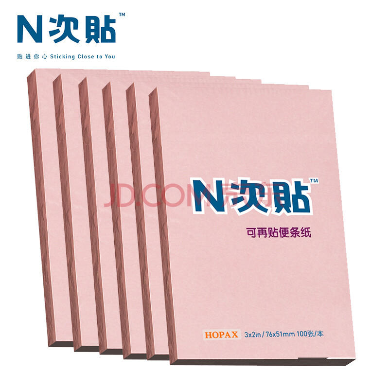 商品相册:N次贴(STICKN)6本装便利贴报事贴/便条纸/便签纸/便签本76*51mm自粘留言本600张 粉红31002-J6第
