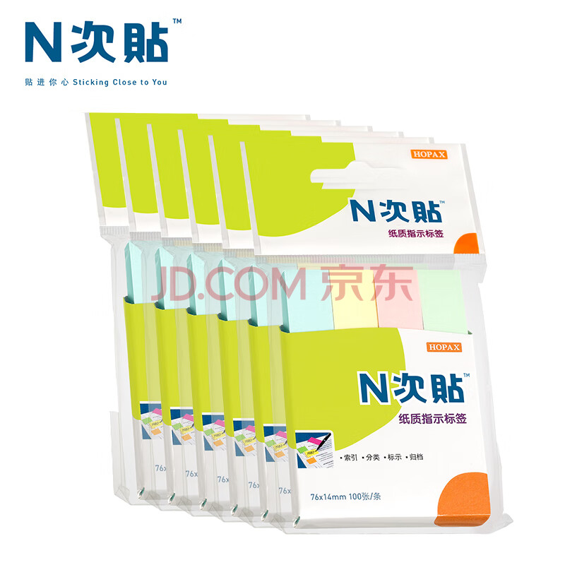 商品相册:N次贴(STICKN)1200张4色便利贴分条索引便签纸76*14mm标签贴便签本便条纸 柔和色6袋装34008-J6第