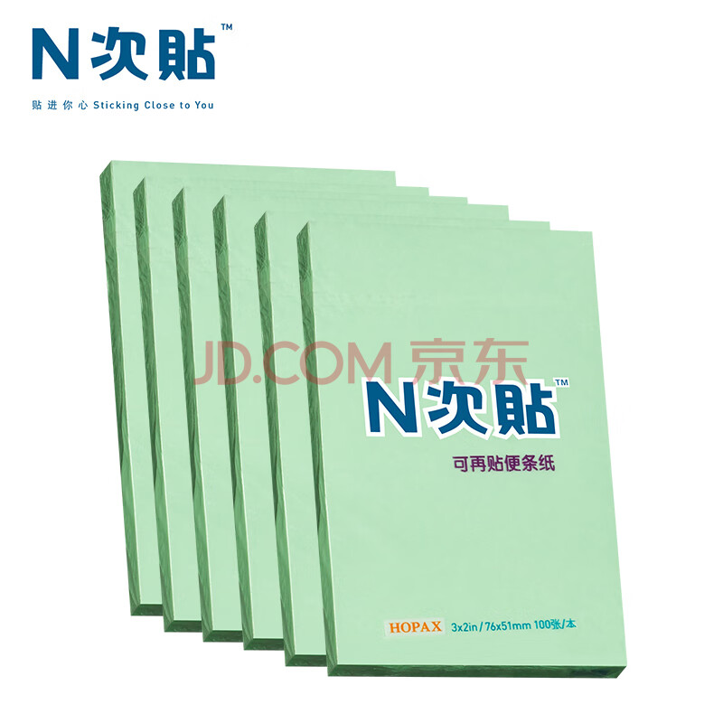 商品相册:N次贴(STICKN)6本装便利贴报事贴/便条纸/便签纸/便签本76*51mm自粘留言本600张 绿色31004-J6第