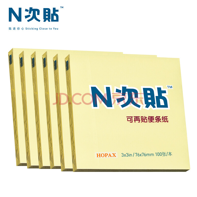 商品相册:N次贴(STICKN)6本装便利贴报事贴/便条纸/便签纸/便签本76*76mm自粘留言本600张 黄色31005-J6第
