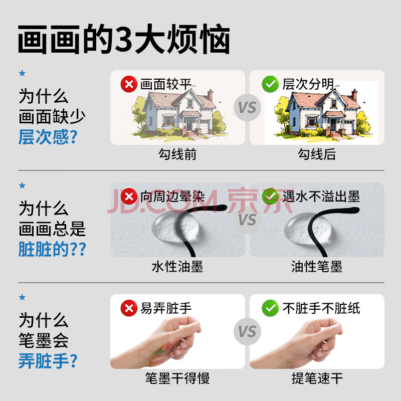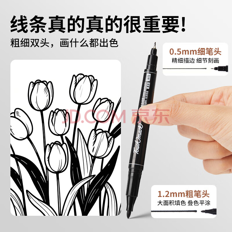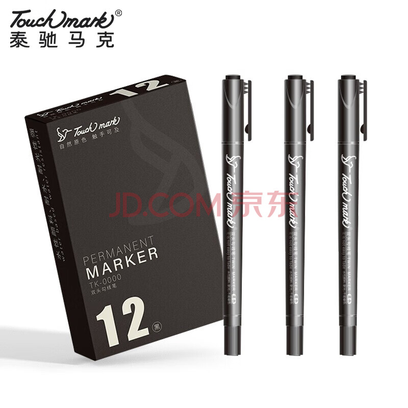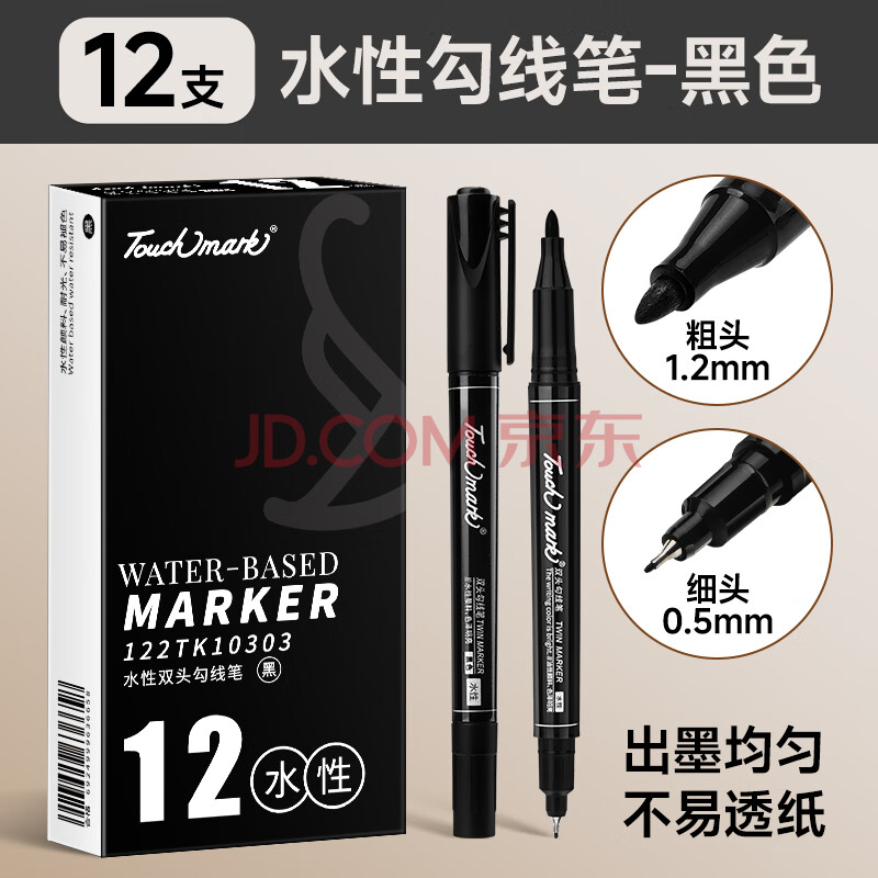 商品相册:Touch mark勾线笔黑色双头水性记号笔易水洗儿童绘画学生用美术勾线笔生日礼物 12支第