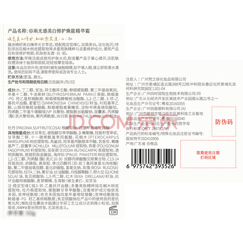 商品相册:谷雨早C晚A面霜(美白霜+山参霜)美白修护紧致淡纹化妆品第