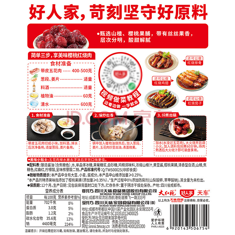 商品相册:好人家樱桃红烧肉调料100g 【0添加防腐剂】酸甜一料多用菜谱式调料第