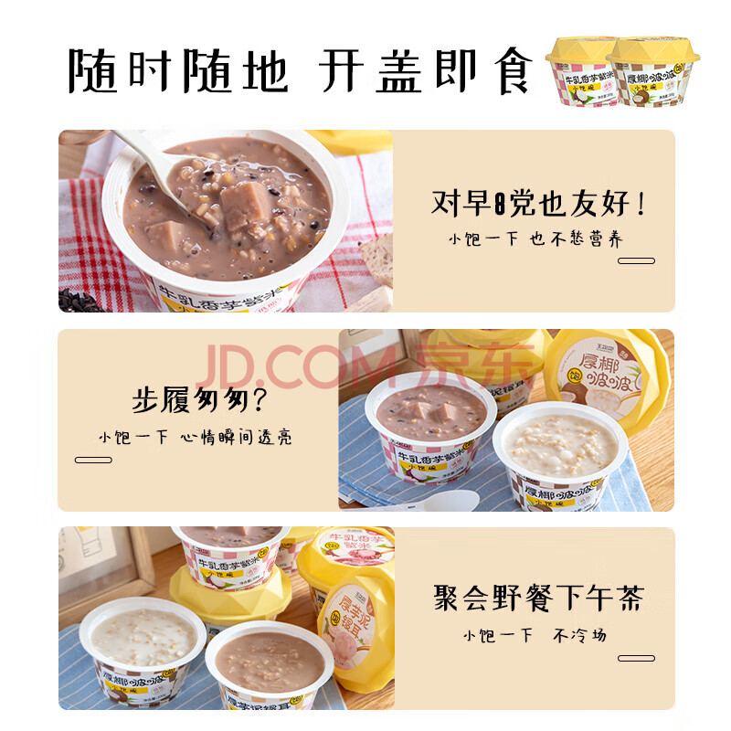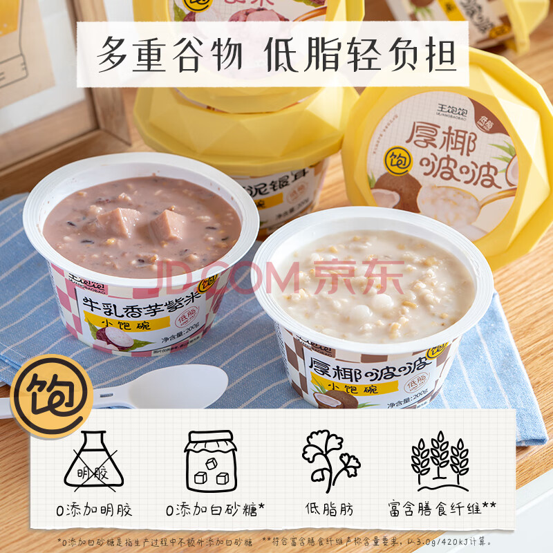 商品相册:王饱饱 牛乳香芋紫米小饱碗液体燕麦粥即食低脂甜品饱腹代餐下午茶200g第1张/共8