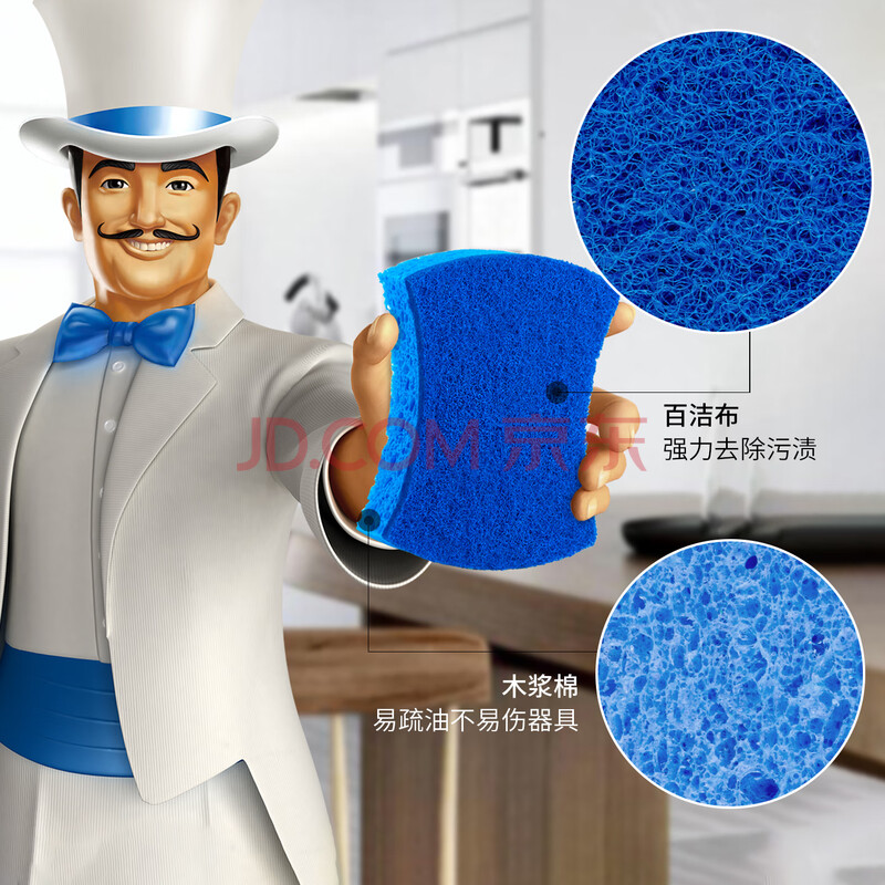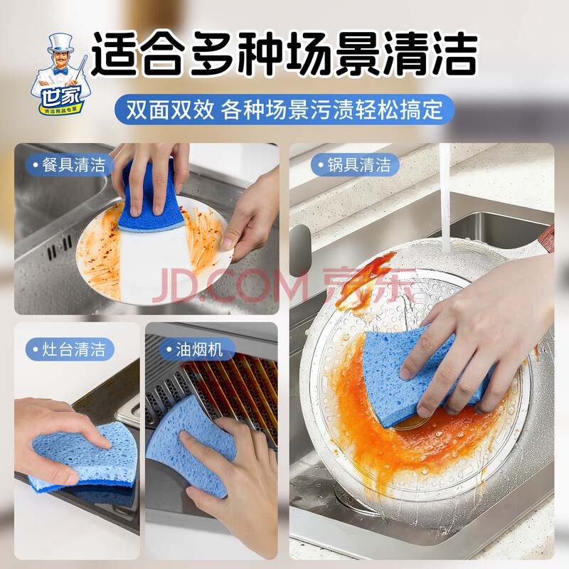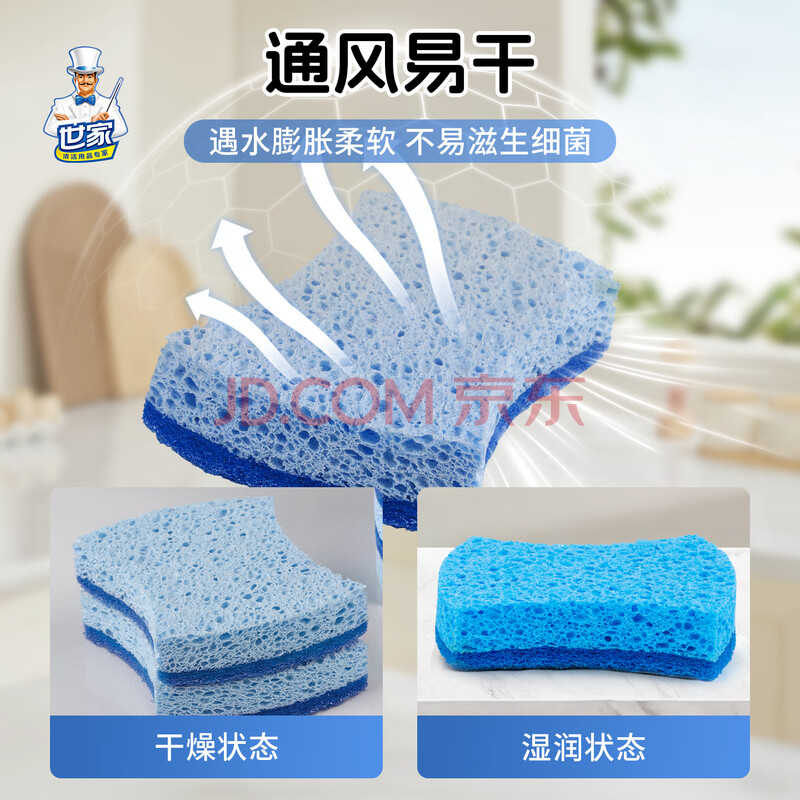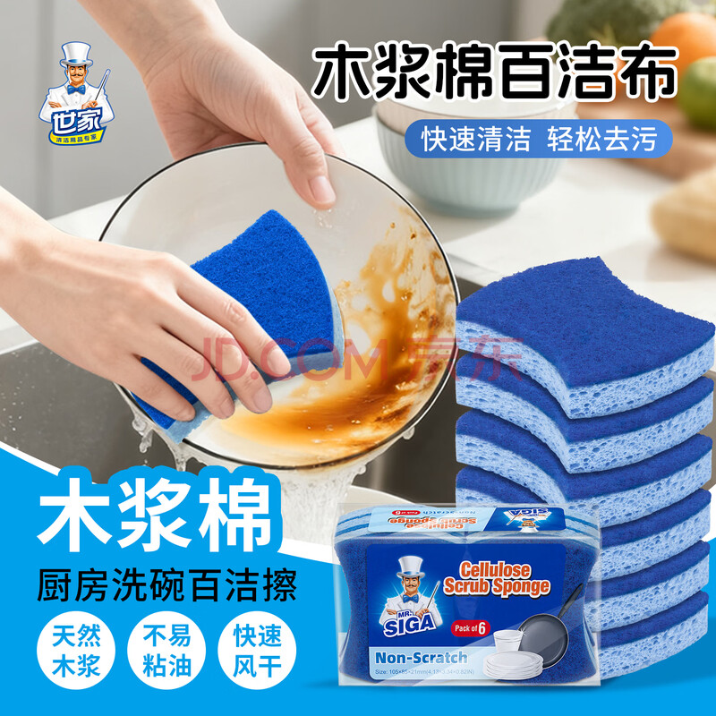 商品相册:世家百洁布无砂木浆海棉10.5*8.5*2CM*6片 洗碗海绵厨房抹布去油污第