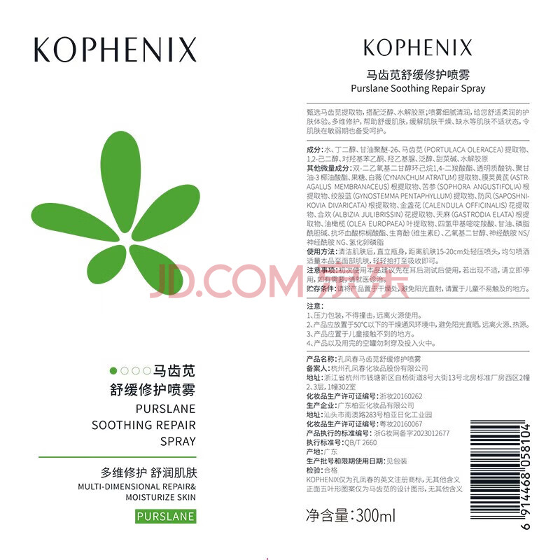 商品相册:孔凤春国货马齿笕舒敏补水喷雾湿敷化妆保湿水300ml第