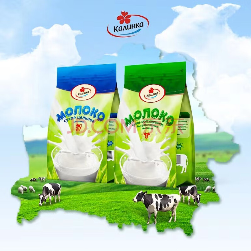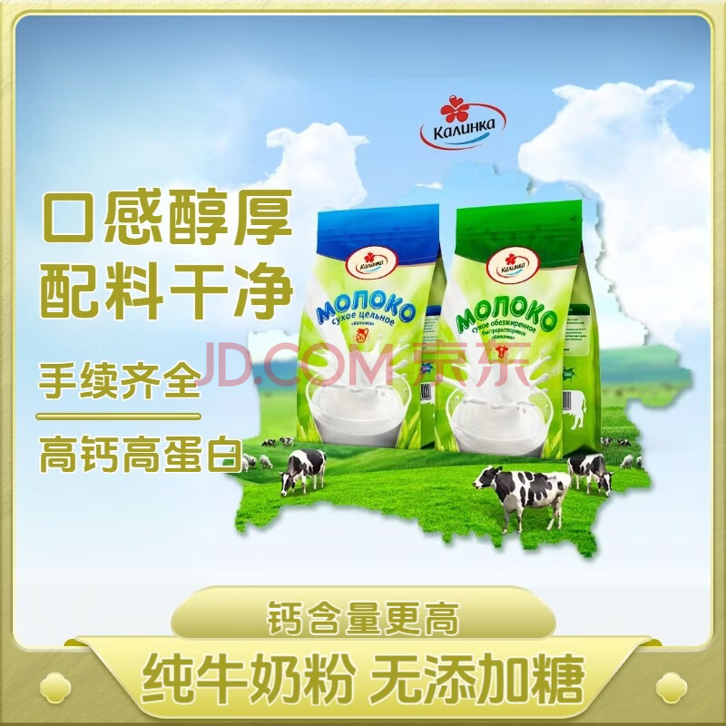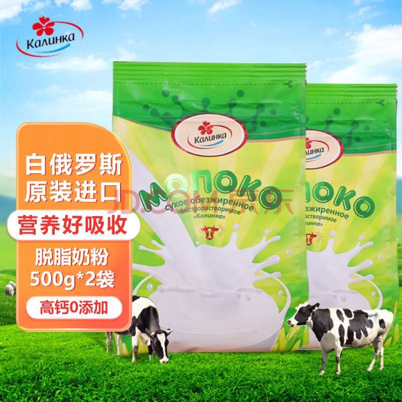 商品相册:卡林卡白俄罗斯脱脂奶粉500g*2袋 原装进口高钙高蛋白成人中老年牛奶粉第1张/共9