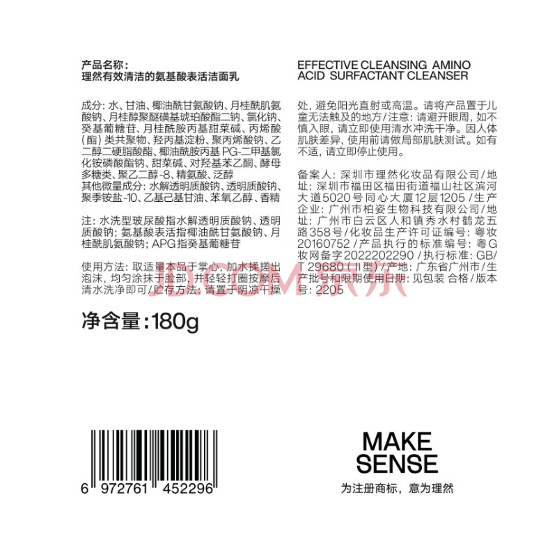 商品相册:理然洗面奶男士洁面乳氨基酸温和清洁不紧绷玻尿酸保湿洗脸护肤第
