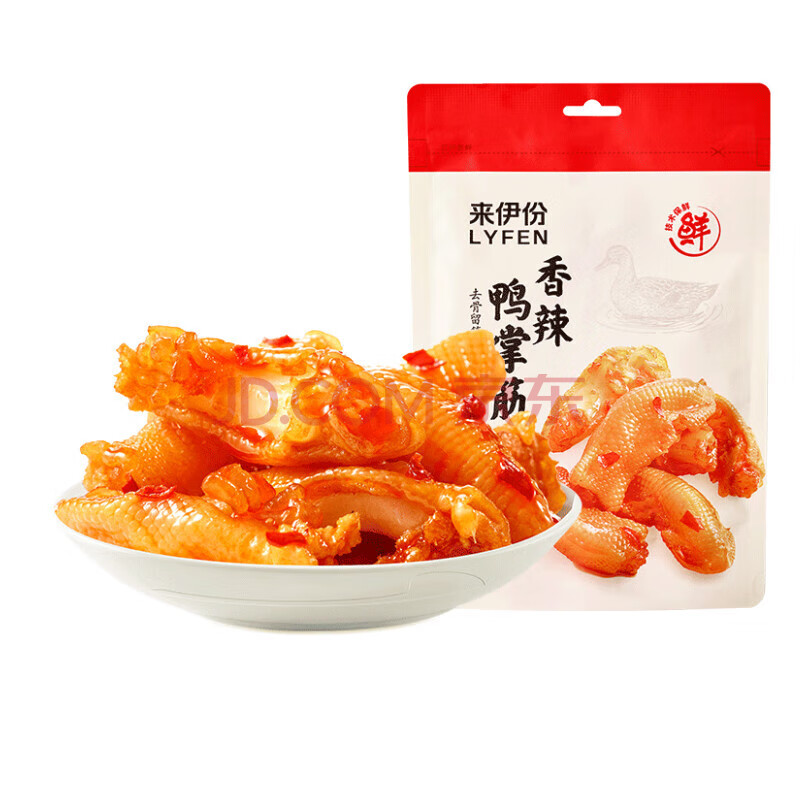 商品相册:来伊份卤鸭掌筋香辣味90g卤味熟食去骨鸭爪鸭脚下酒菜肉干肉脯休闲零食第