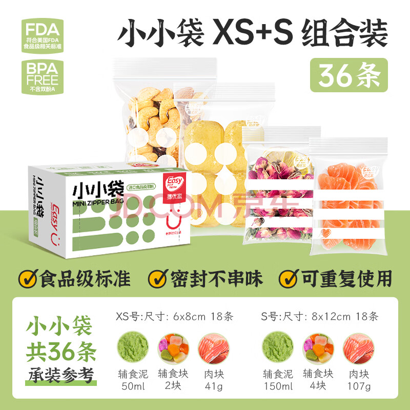 商品相册:易优家 密封袋宝宝辅食袋分装袋食品袋保鲜袋透明袋维生素药片36个 第1张/共3