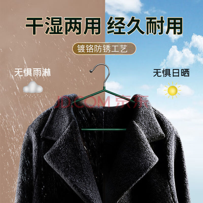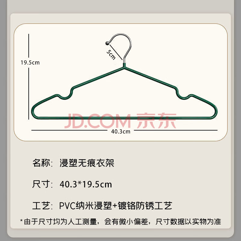 商品相册:尚美德 不锈钢衣架浸塑加粗家用防滑无痕衣挂成人衣架墨绿色【20只装】第