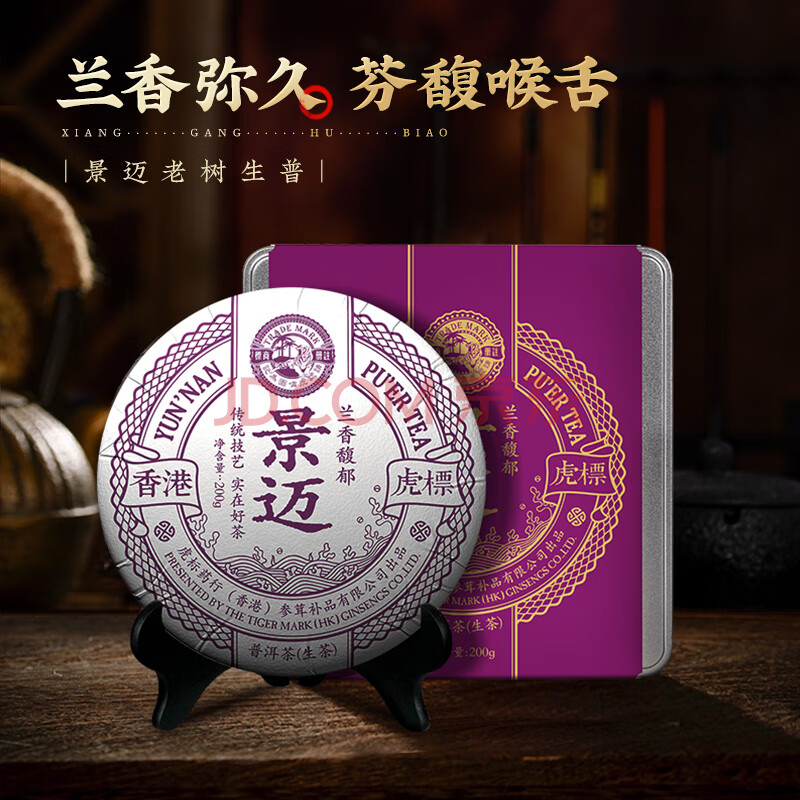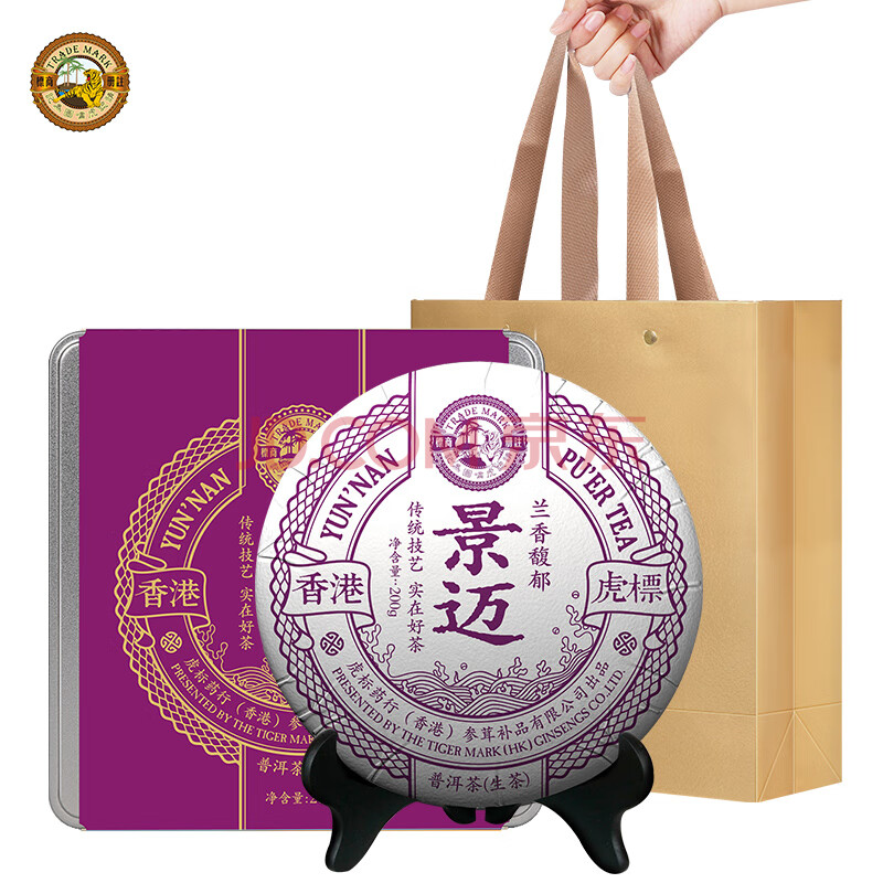 商品相册:虎标中国香港品牌普洱生茶景迈山老树茶普洱生茶200g铁盒装送礼第