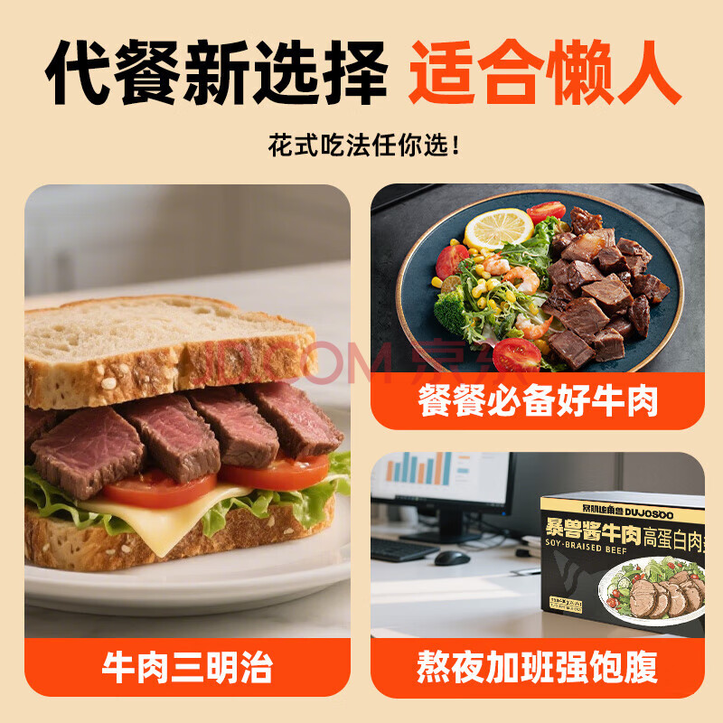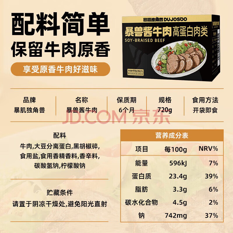 商品相册:暴肌独角兽酱牛肉即食健身代餐高蛋白卤汁肉脯熟食轻食品 80g*9袋第