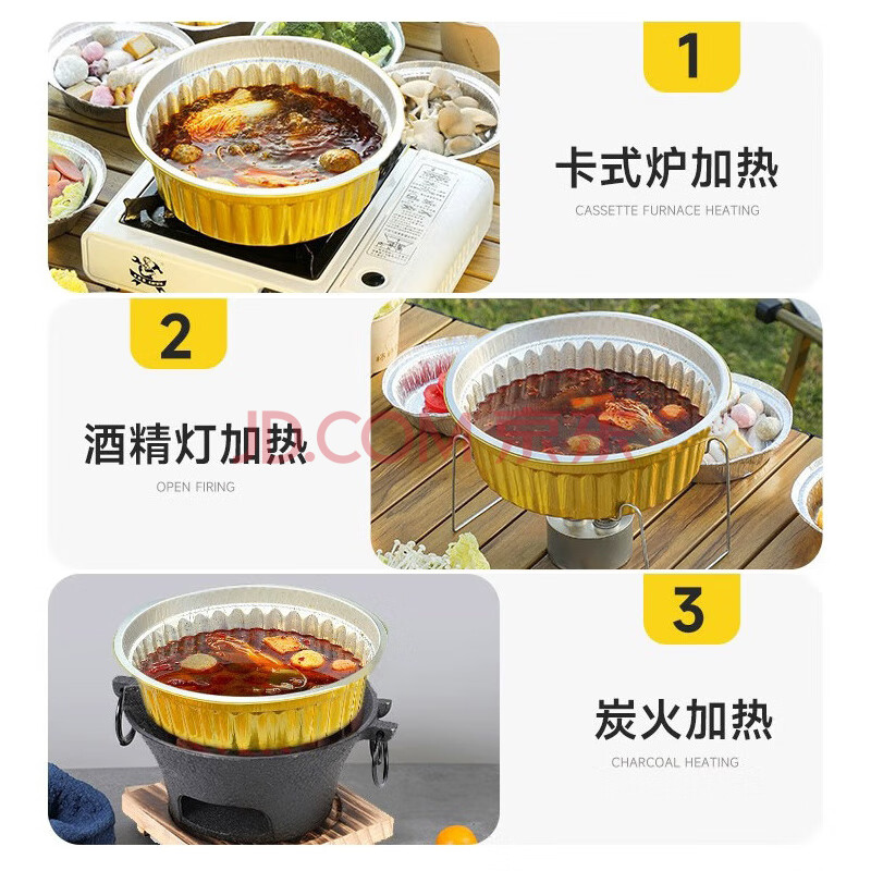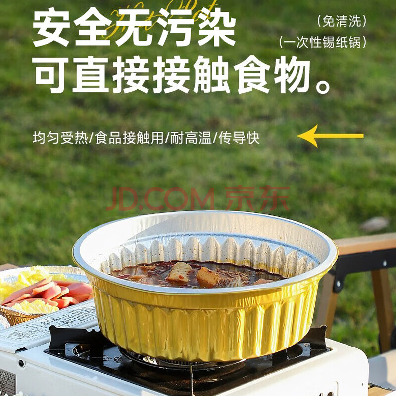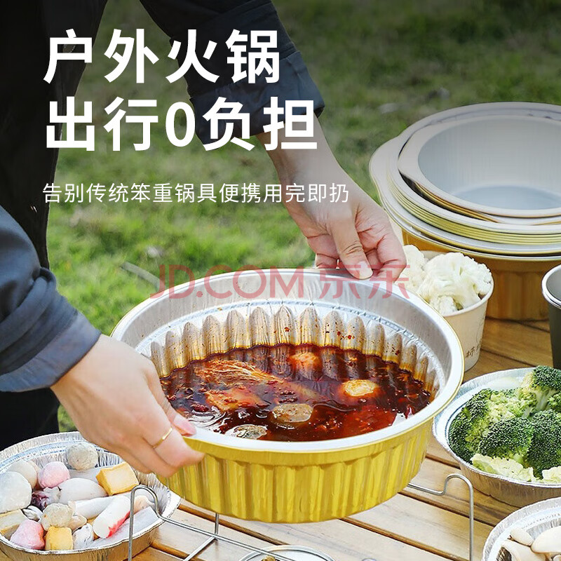 商品相册:唐宗筷 一次性铝箔盒1130ml*10个 带盖户外锡纸锅加厚火锅外卖餐盒野餐第