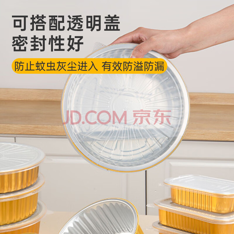 商品相册:唐宗筷 一次性铝箔盒3000ml*5个 带盖火锅外卖烧烤烘焙 加厚锡纸锅 野餐第