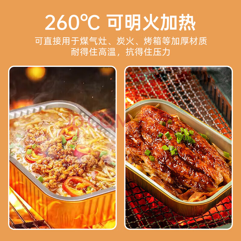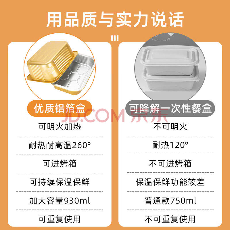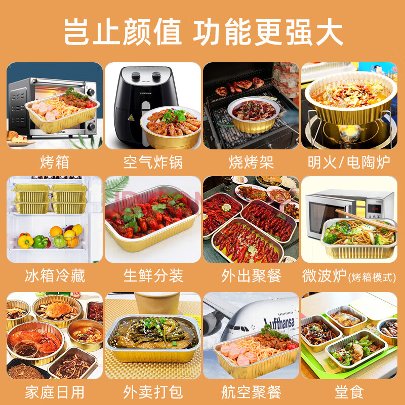 商品相册:唐宗筷 一次性铝箔打包盒930ml*10个 加配盖饭盒 方形加厚 外卖餐盒露营第