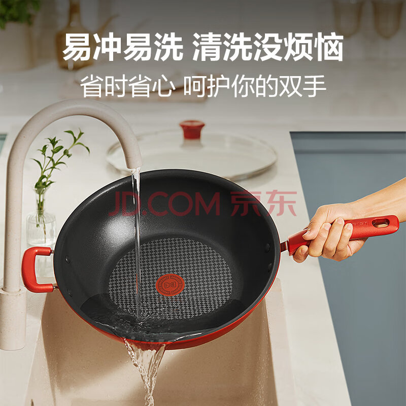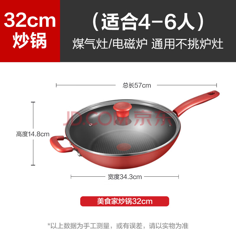 商品相册:特福(Tefal)炒锅有钛不粘锅家用炒菜锅少油烟锅32cm炒锅佳温红心磁炉通用炒锅第