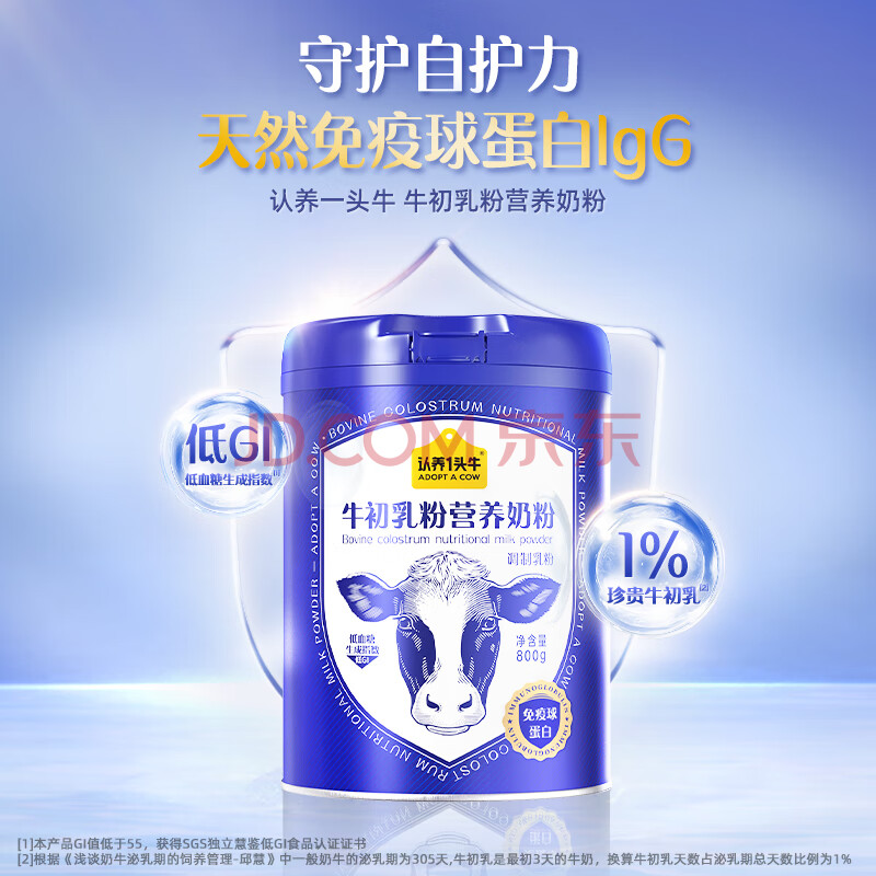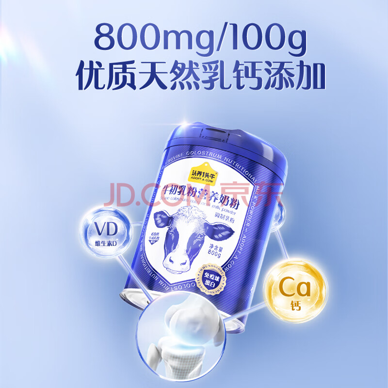 商品相册:认养一头牛中老年奶粉 牛初乳奶粉 0蔗糖低GI 800g/罐 奶粉送礼送长辈第