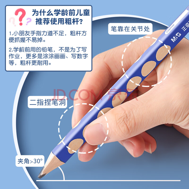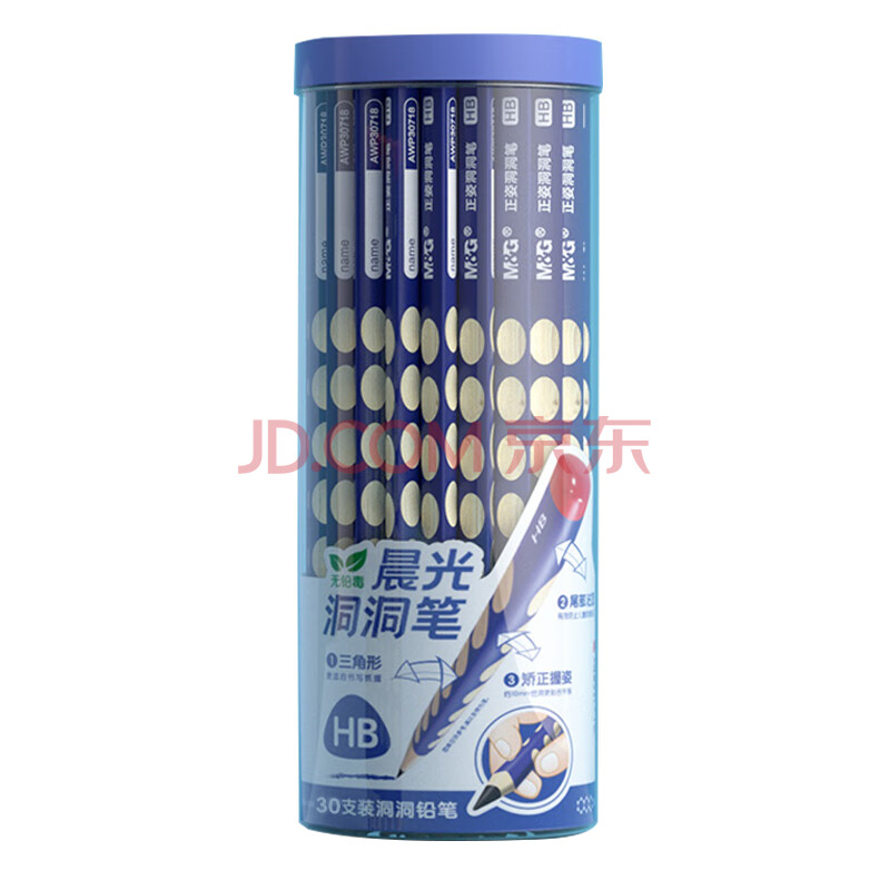 商品相册:晨光(M&G)文具HB洞洞铅笔30支学生开学练字儿童正姿矫姿三角杆沾顶易抓握 AWP30718 【初学用特粗杆】30支HB第