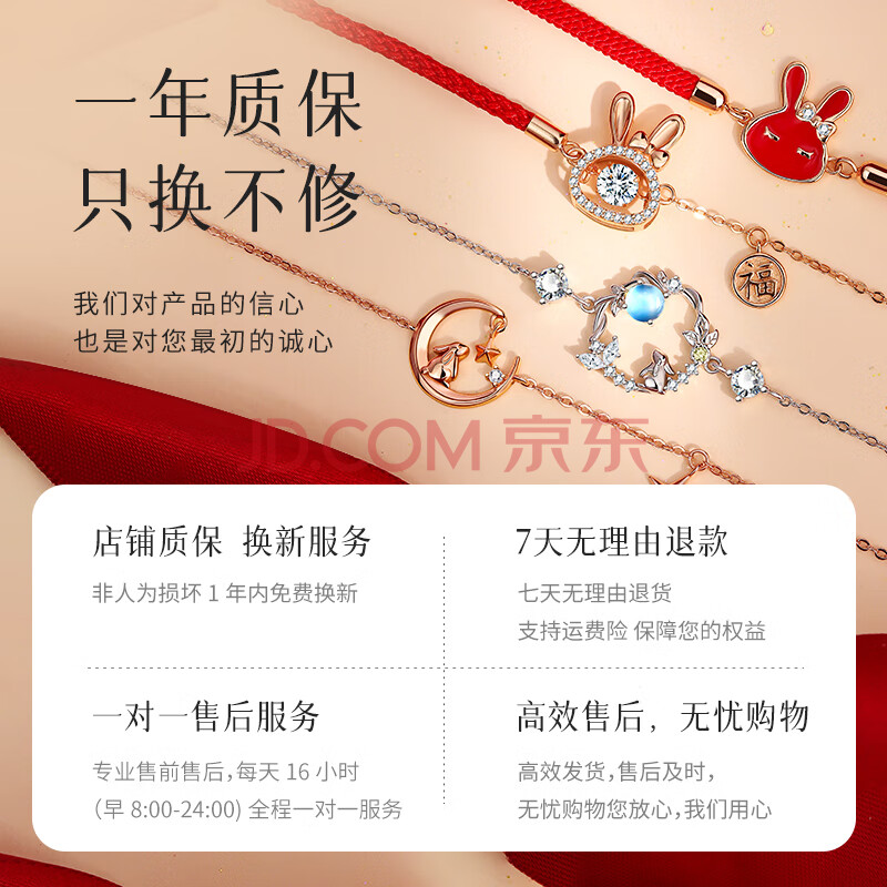 商品相册:曼禾S925银手链女士款生肖兔子红绳手串首饰本命年生日礼物送女生朋友第