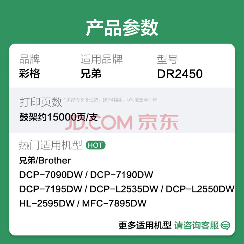 商品相册:彩格DR2450成像鼓 适用兄弟DCP-7190DW打印机 TN2425 2448碳粉盒 DCP-L2535DW L2550DW DCP-7090DW 7195DW硒鼓架第