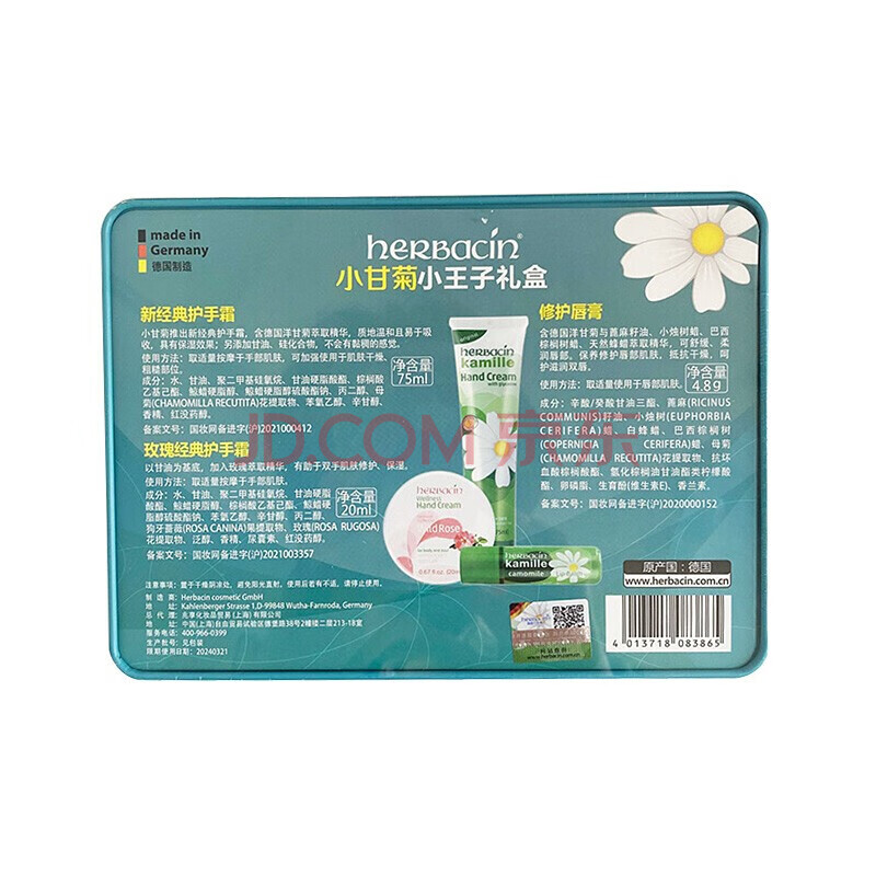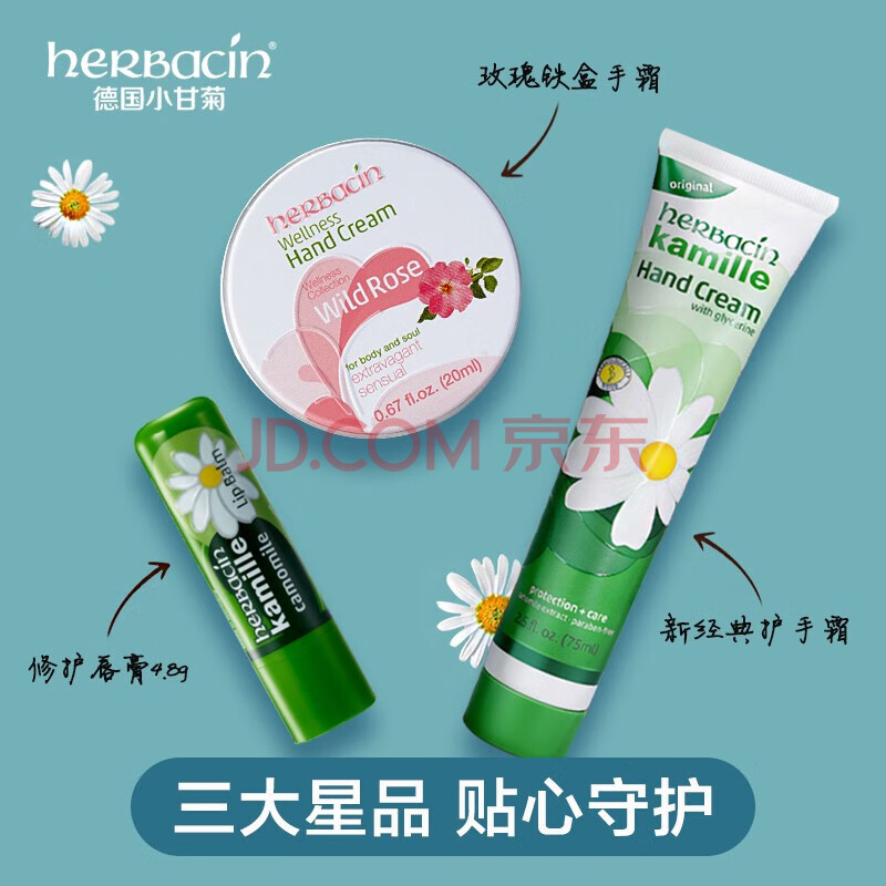 商品相册:贺本清贺本清小甘菊小王子套装(新经典75ml+玫瑰20ml+唇膏4.8g)护手霜第
