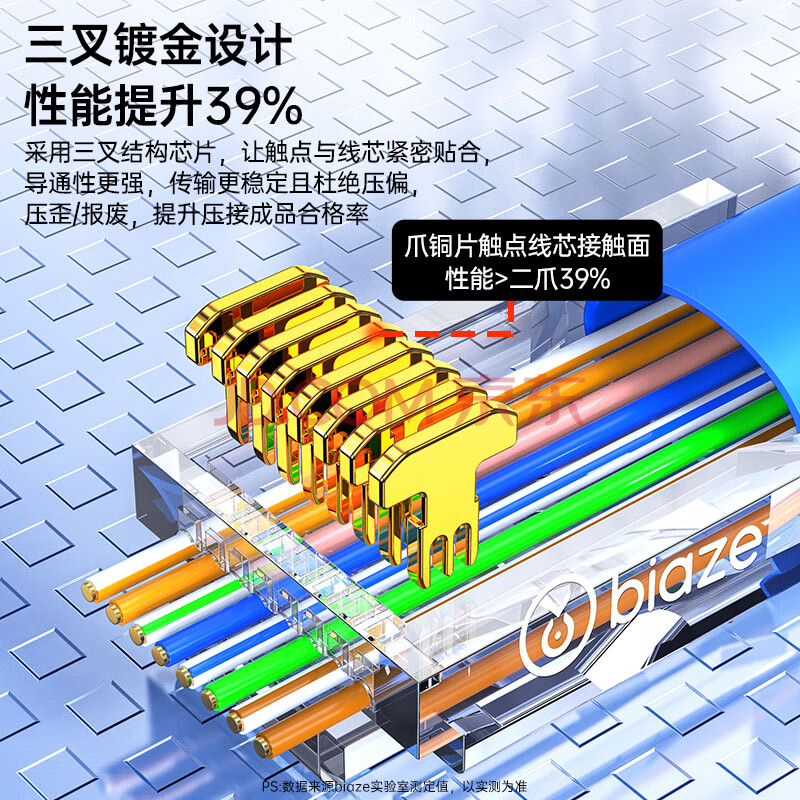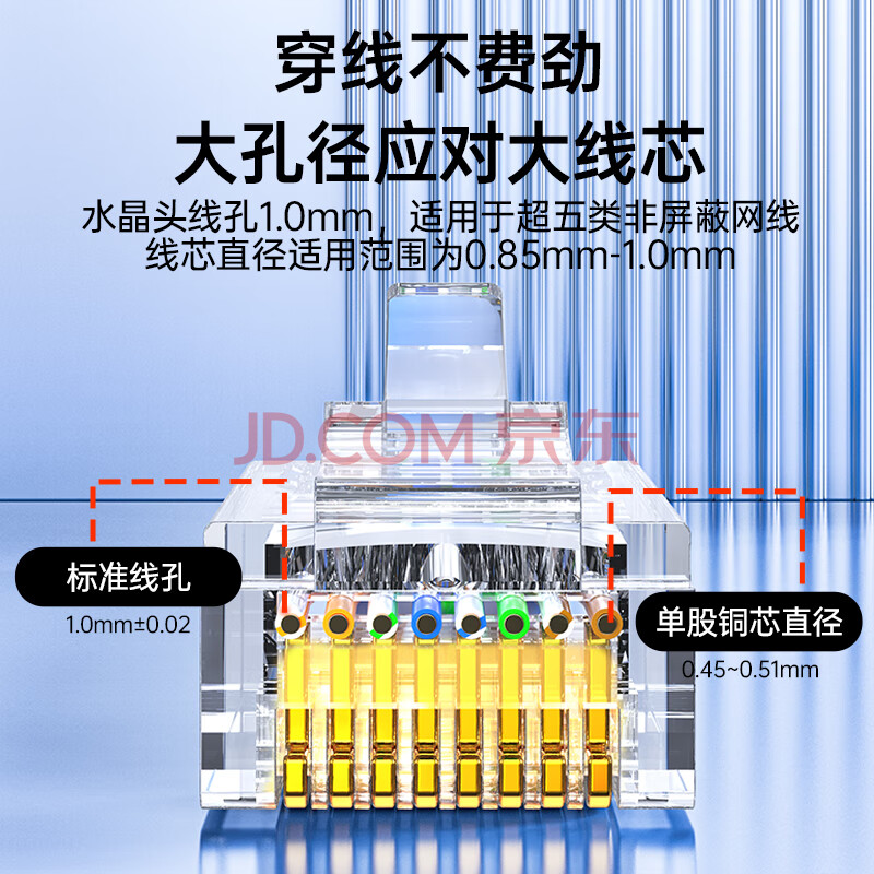 商品相册:毕亚兹 超五类穿孔式网线水晶头 超5类千兆网络接头 镀金RJ45电脑网线连接器 CAT5E通孔水晶头 100个第