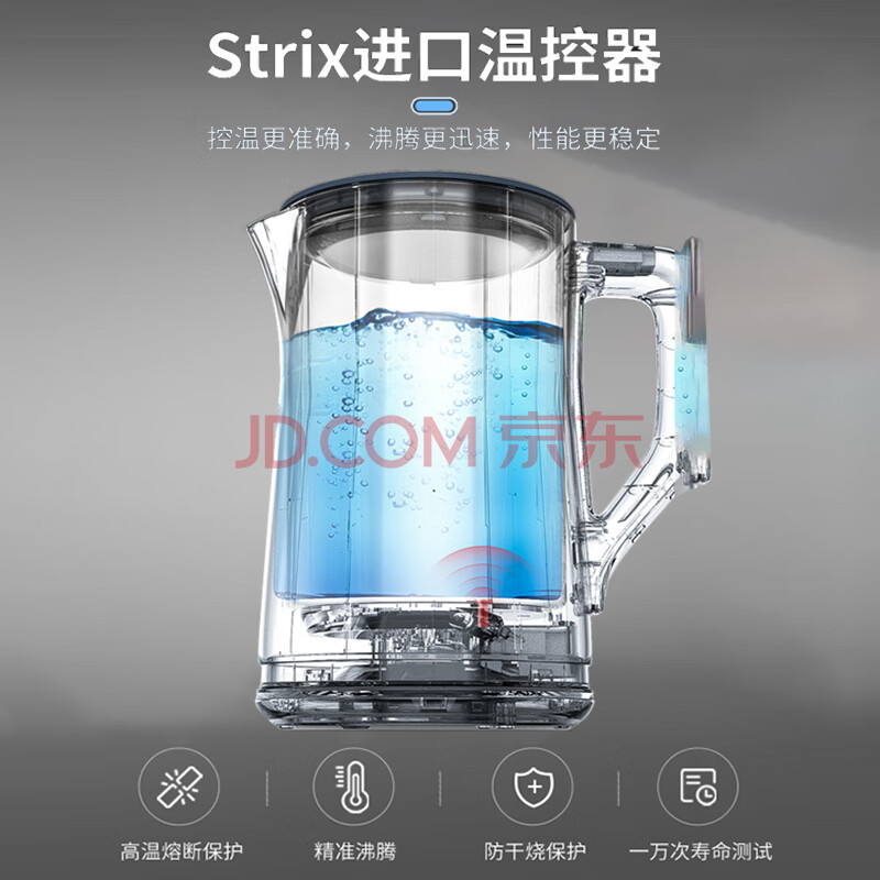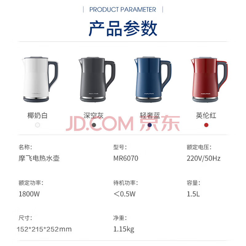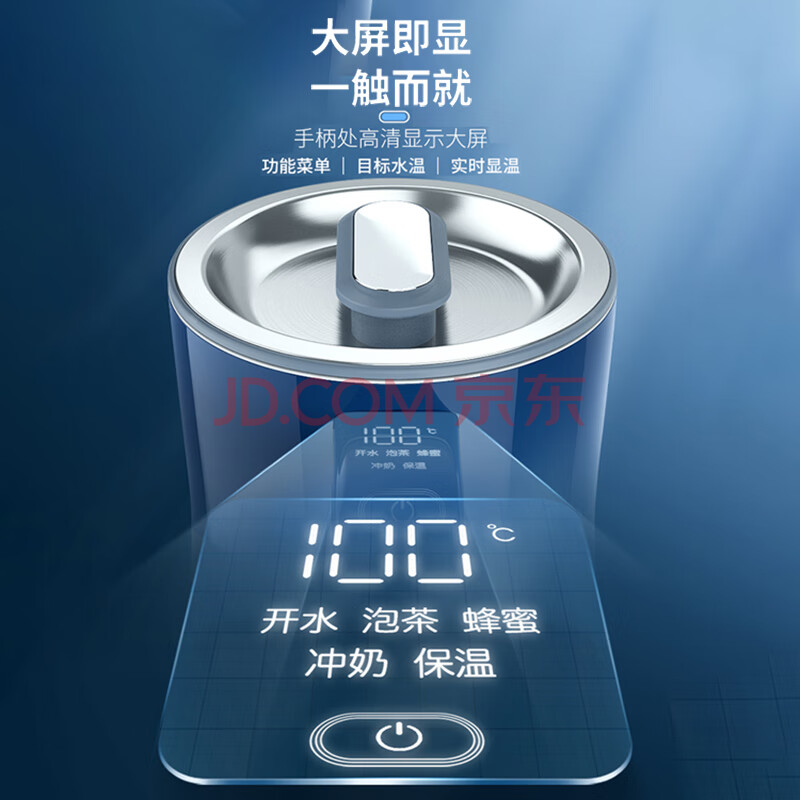 商品相册:摩飞电器(Morphyrichards)电热水壶 恒温水壶1.5L 双层防烫304不锈钢实时显温开水壶 MR6070 轻奢蓝第