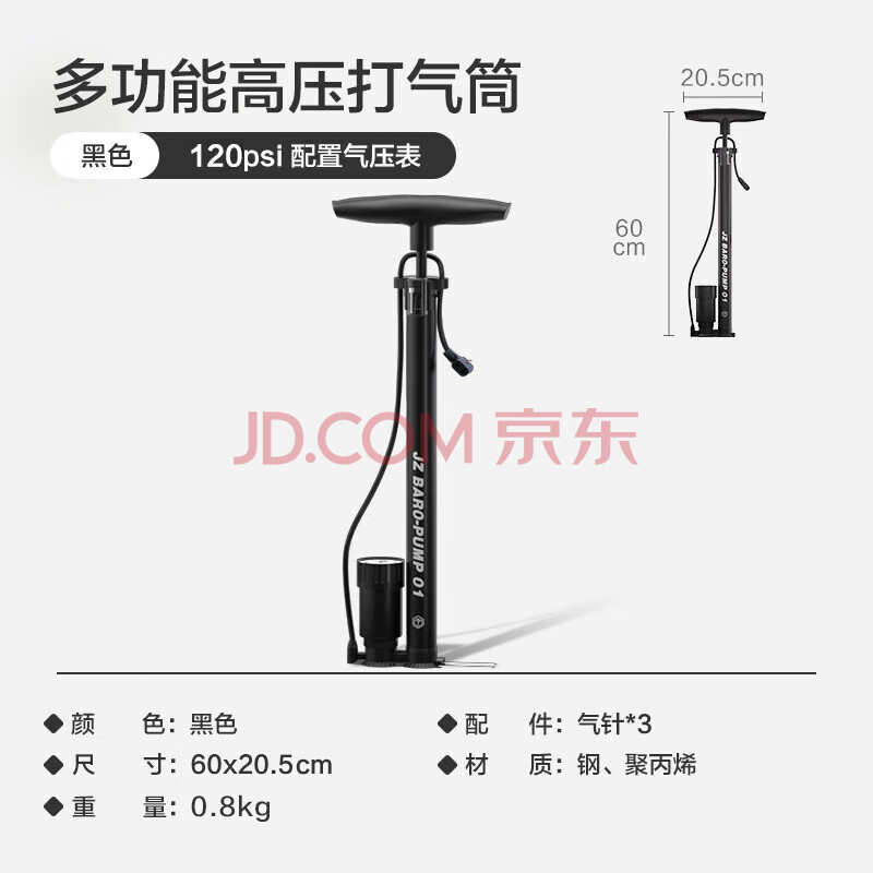 商品相册:京东京造 120PSI高压打气筒双增压气压表 自行车摩托车电动车足篮球充气泵第