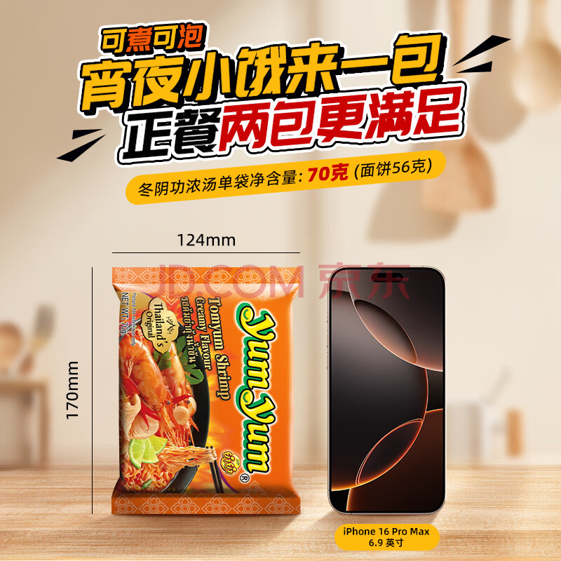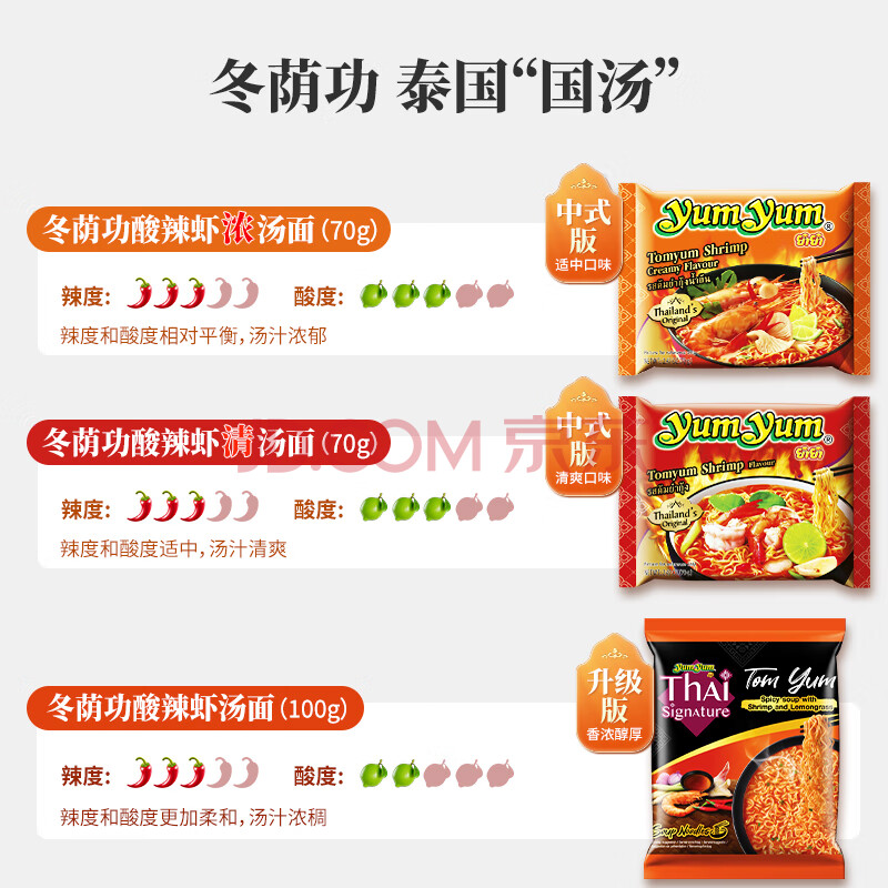 商品相册:养养(YUMYUM)牌(YUMYUM)泰式冬荫功酸辣虾味浓汤面70g*5袋速食泡面五连包第
