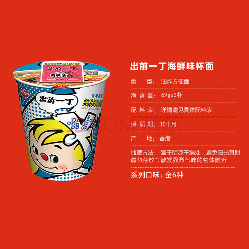 商品相册:出前一丁(NISSIN)日清 进口方便面 海鲜味杯面69g*3 泡面拌面早餐零食中秋第