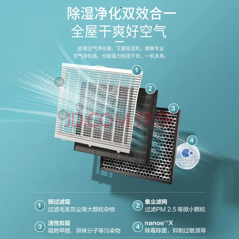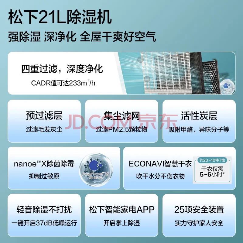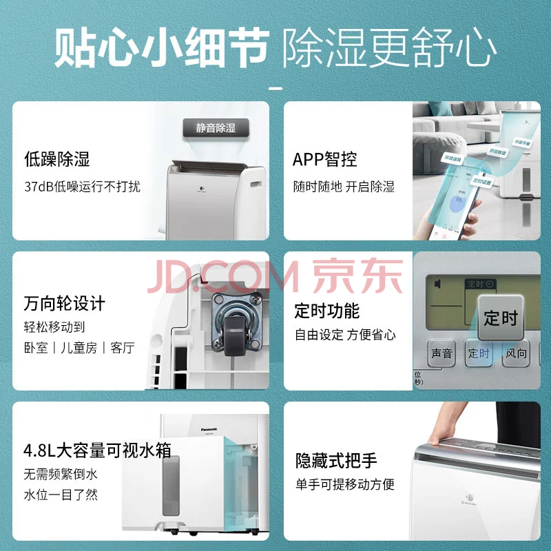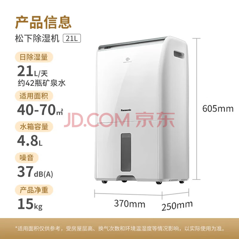 商品相册:松下(Panasonic)除湿机 家用抽湿机 除湿量21升/天45㎡ 除菌除味 净化除湿一体机 回南天轻音干衣APP控制F-42C2YTA第1张/共7