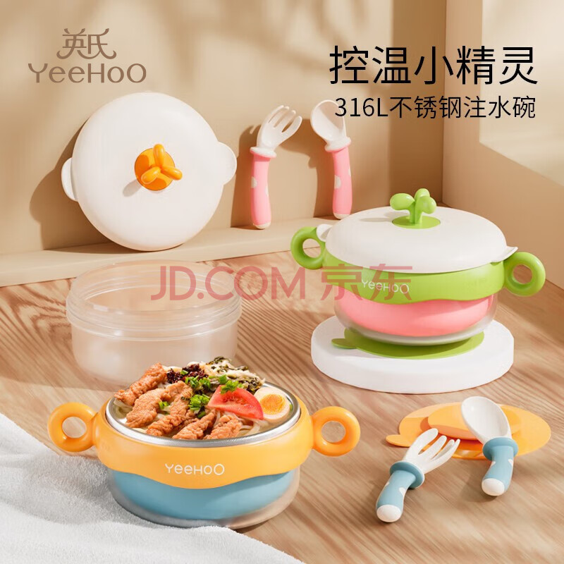 商品相册:英氏(YEEHOO)宝宝辅食碗婴儿注水保温碗不锈钢儿童餐具吸盘碗 公主粉-三件套第