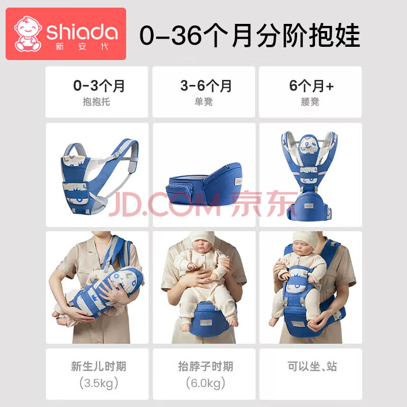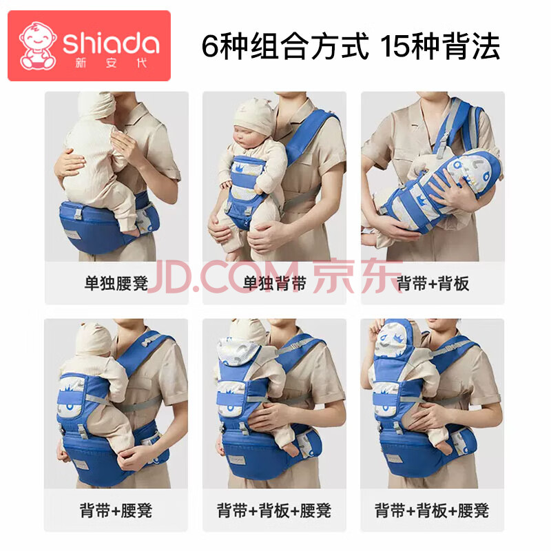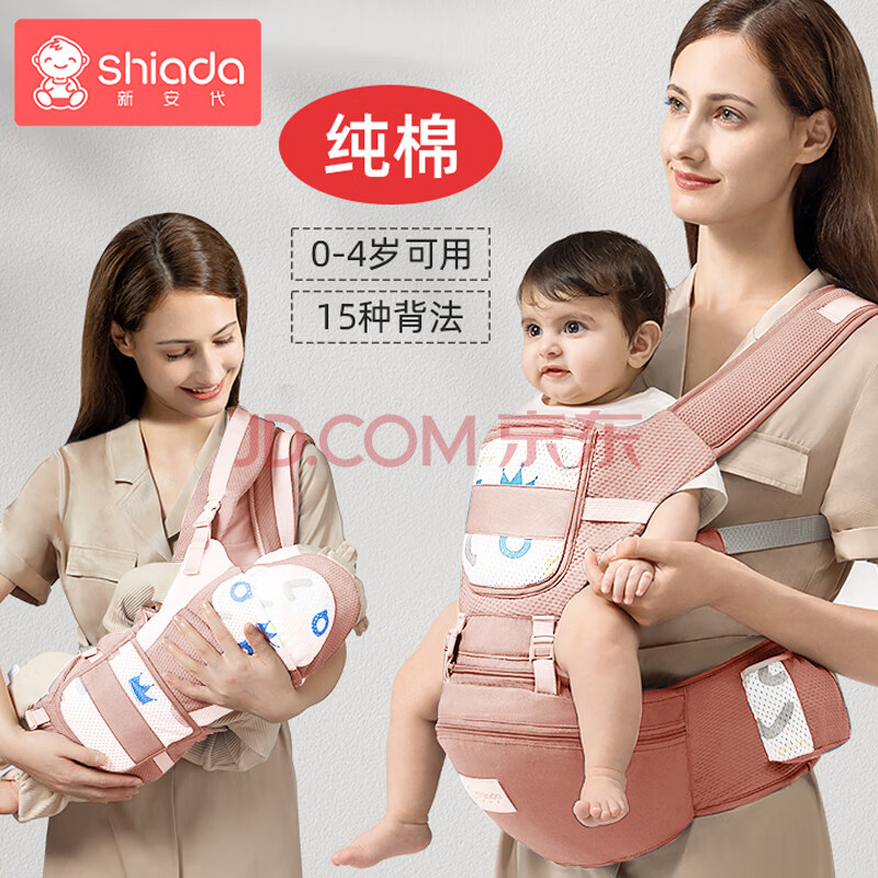 商品相册:新安代婴儿背带腰凳前后坐凳 抱娃神器四季多功能背带 护颈可横抱安妮粉第