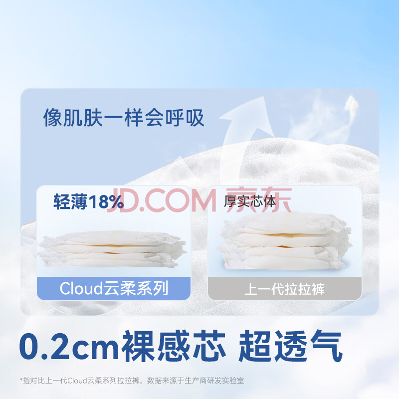 商品相册:京东京造婴儿拉拉裤尿不湿纸尿裤Cloud云柔XL34片(12-17kg)超薄透气第