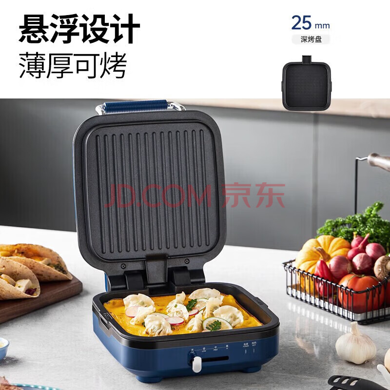 商品相册:摩飞 电饼铛家用早餐机小型多功能煎烤锅轻食面包吐司压烤机华夫饼机 MR8600轻奢蓝第