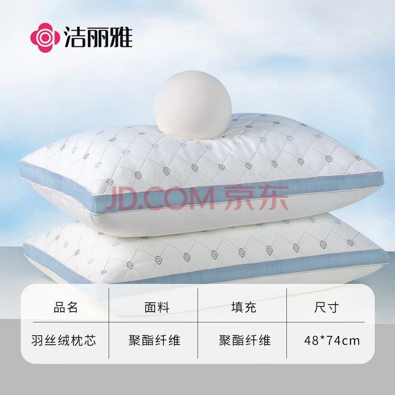 商品相册:洁丽雅(Grace)枕头枕芯星级酒店羽丝绒枕芯可水洗枕 纤维软枕芯 一对装 48*74cm第
