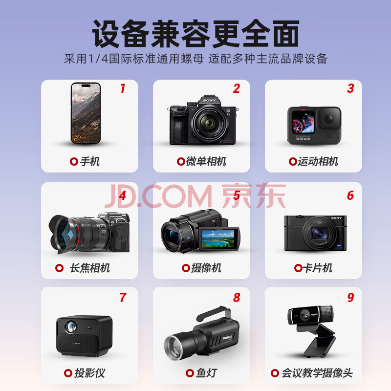 商品相册:劲捷 KINGJOY相机三脚架手机架直播专用单反摄影微单拍摄专业架子投影仪落地多功能便携户外直播支架 VT-860S第