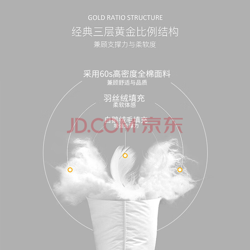 商品相册:源生活星级酒店羽毛枕头 酒店专用复合白鹅毛枕芯 高枕单只 48*74cm第