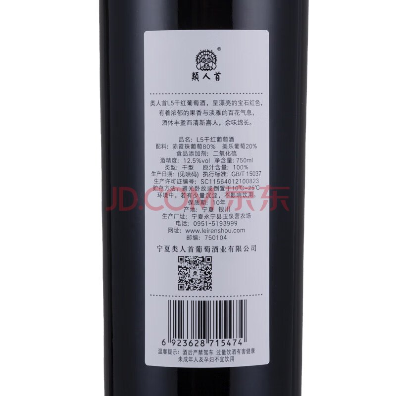 商品相册:类人首 宁夏红酒 L5干红葡萄酒750ml*6瓶整箱佐餐酒贺兰山东麓产区第