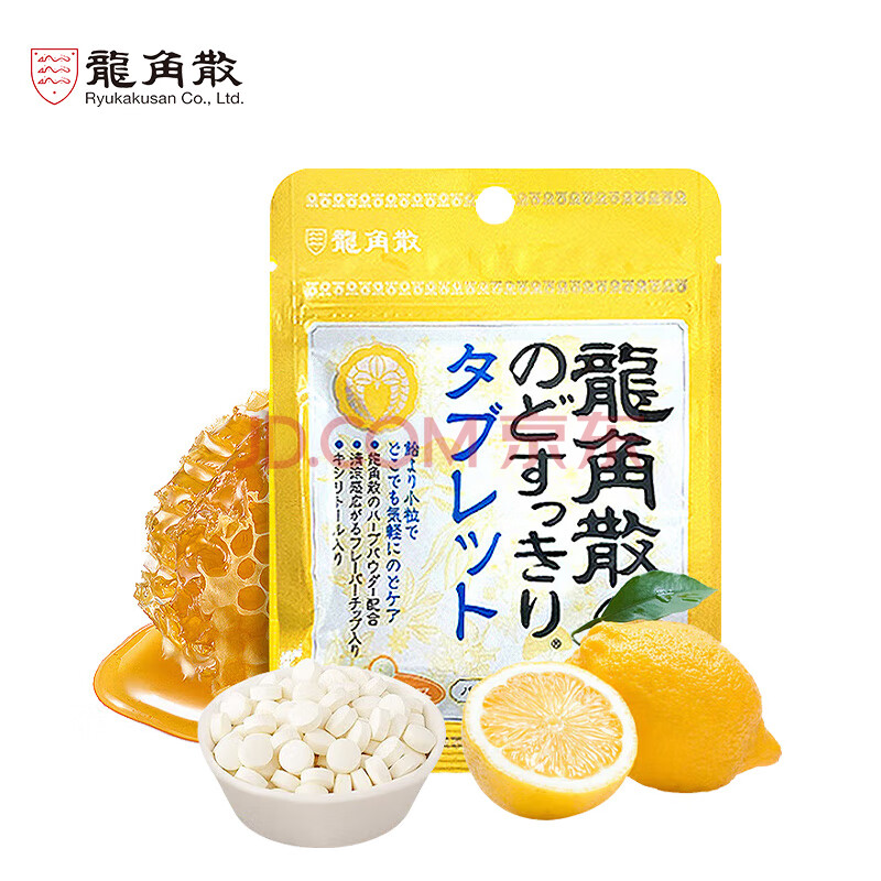 商品相册:龙角散 蜂蜜柠檬味无糖含片 10.4g 明星同款 清新口气 休闲零食第