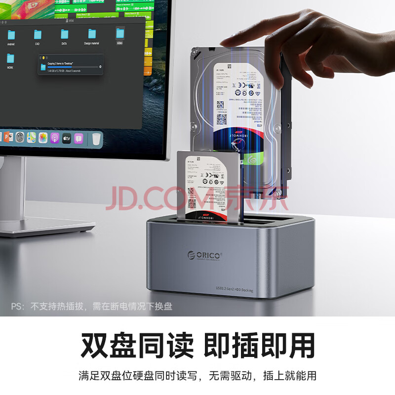 商品相册:奥睿科(ORICO)移动硬盘盒底座2.5/3.5英寸SATA机械固态通用Type-C3.2 ssd外置硬盘盒子移动脱机对拷机6626C3第