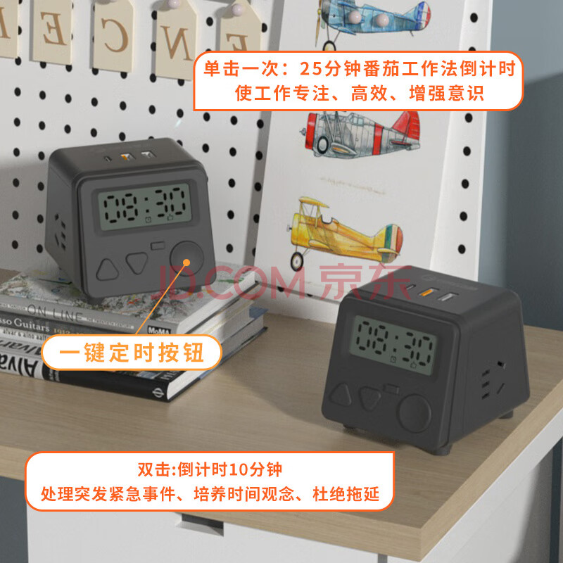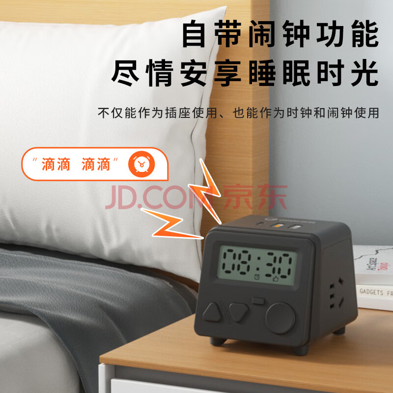 商品相册:吉顺插座排插线板PD20W快充多功能桌面插排电源延长线接线板闹钟时间接线板插头1.5米第
