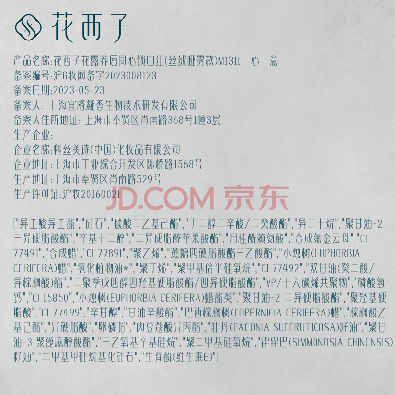 商品相册:花西子同心锁口红C1311唇膏滋润持色提气色送女友生日礼物女订婚礼物第