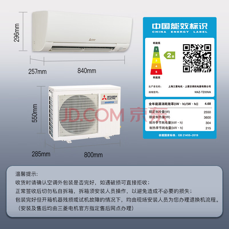 商品相册:三菱电机空调 TZ系列 1匹 新二级能效 纯铜管 银离子滤网 开启式清洁 舒适省电挂机 MSZ-TZ09VA第