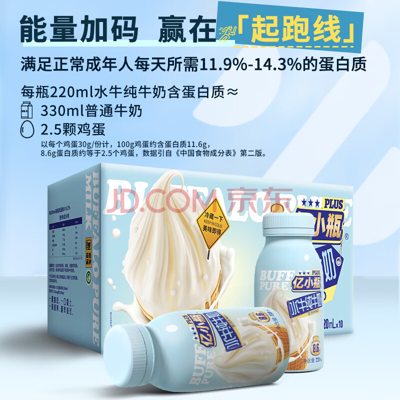 商品相册:亿小瓶 水牛纯牛奶220ml*10 儿童成人早餐奶 牛奶 8.6g优质乳蛋白第