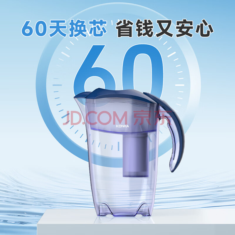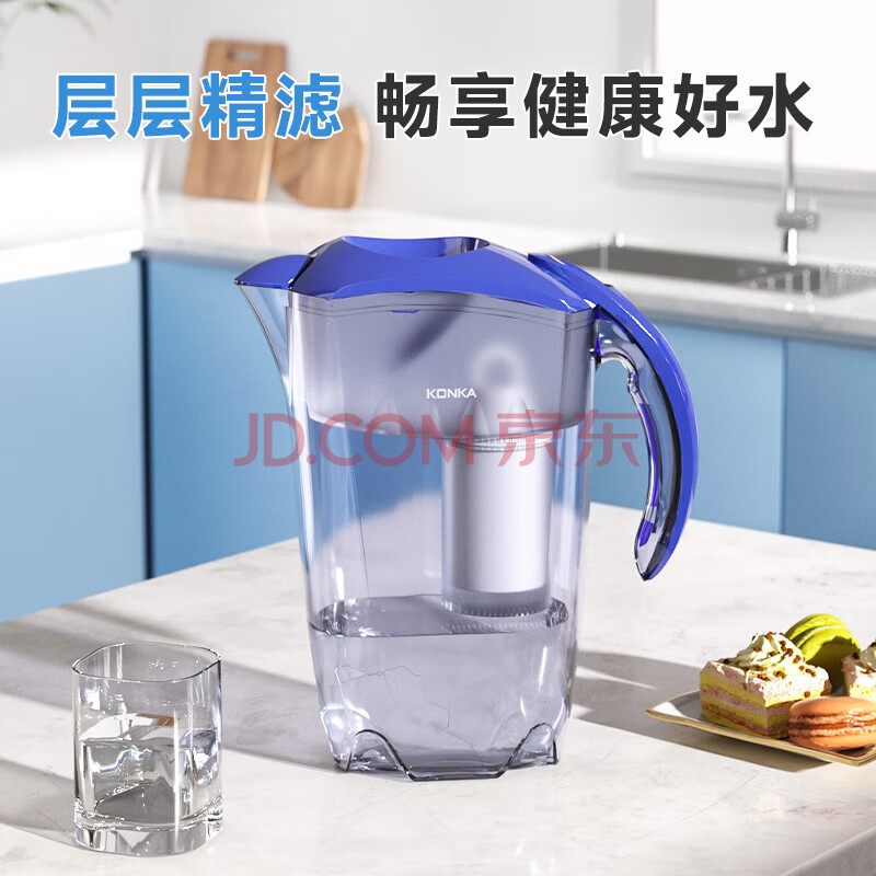 商品相册:康佳(KONKA)净水壶 过滤净水器 家用滤水壶 厨房自来水过滤器 便携净水杯 KLSH-2501B-E (1壶4芯套装)第