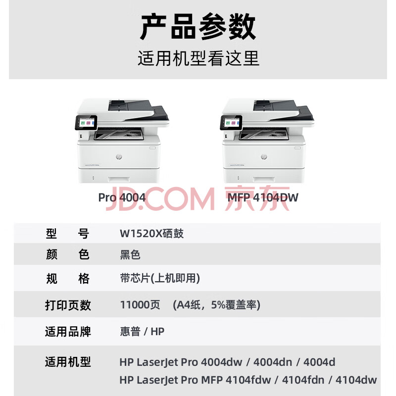 商品相册:V4INK适用 惠普4104dw硒鼓 152a硒鼓带芯片 hp 4004dn打印机硒鼓4104fdn 4104fdw hp4104dw w1520a硒鼓152x墨盒第