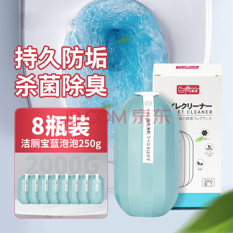 商品相册:巨奇严选 洁厕灵蓝泡泡除臭250g*8瓶马桶清洁剂厕所抑菌去异味清洁块第1张/共6